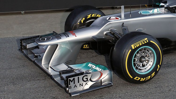 Ancak böyle olmak zorunda olmadığını da kısa sürede anladık, çünkü Alman otomotiv devi Mercedes’in W05 aracında böyle burunlardan eser yoktu.