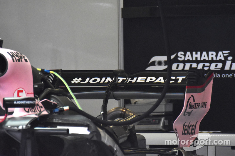 Force India, Azerbaycan'a yeni bir arka kanat bağlantısı ile geldi. Daha çok düşük yere basma gücü ayarlarına göre hazırlanmış gibi görünen arka kanadın ana parçası yukarıya doğru kıvrımlı