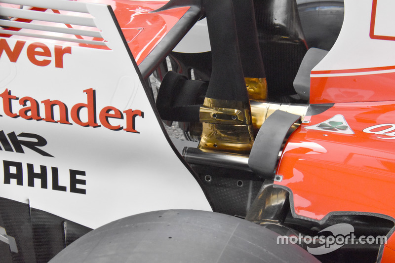 Sidepodun önündeki kısım, bu sene bir çok araçta olduğu gibi karmaşık bir yapıya bürünmüş