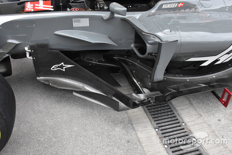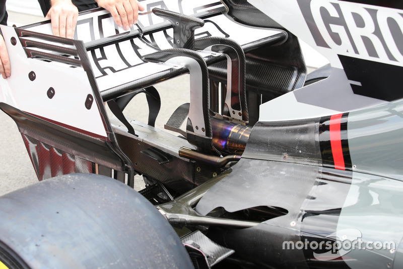 Haas takımı, Ferrari gibi tek bağlantılı arka kanat yerine çift bağlantıya geçmiş.