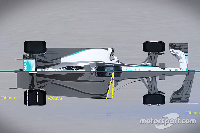 2016'da Formula 1 araçlarının genişliği maksimum 1800 mm oluyordu. Bu sene ise yapılan değişikliklerden araç genişliği de nasibini aldı. Yeni araçlar 2000 mm genişliğinde olacak.