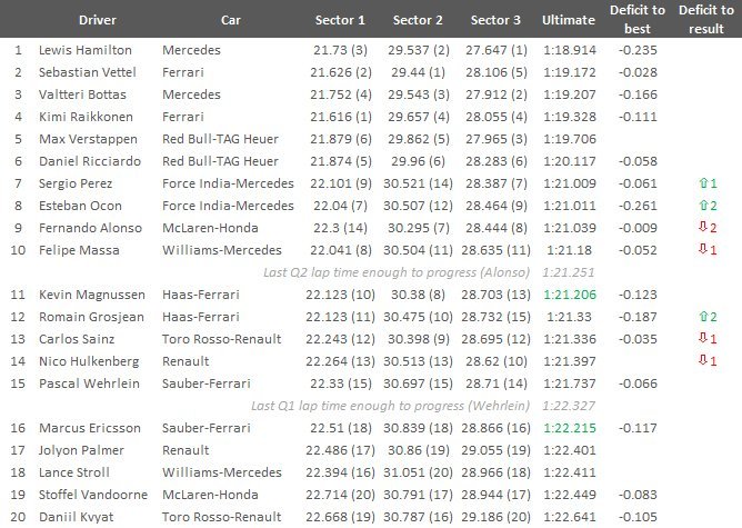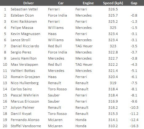 2017 İspanya GP Sıralamalar: Sektör Zamanları ve Sürat Ölçümü