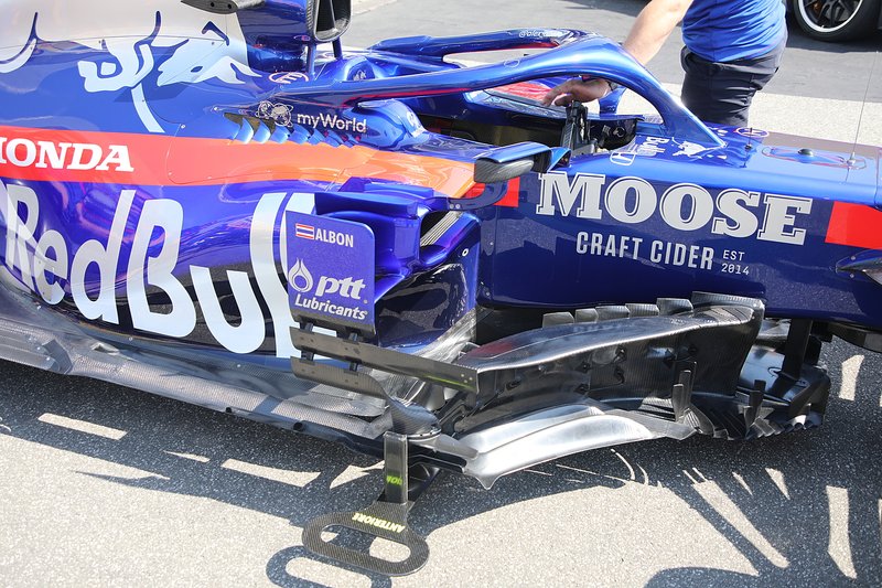 Toro Rosso'nun sidepod yanındaki dikey kanat bölümünde ve bargeboard'unda güncelleme mevcut. Bargeboard bölümünde üst bumerang kanat eklendi.