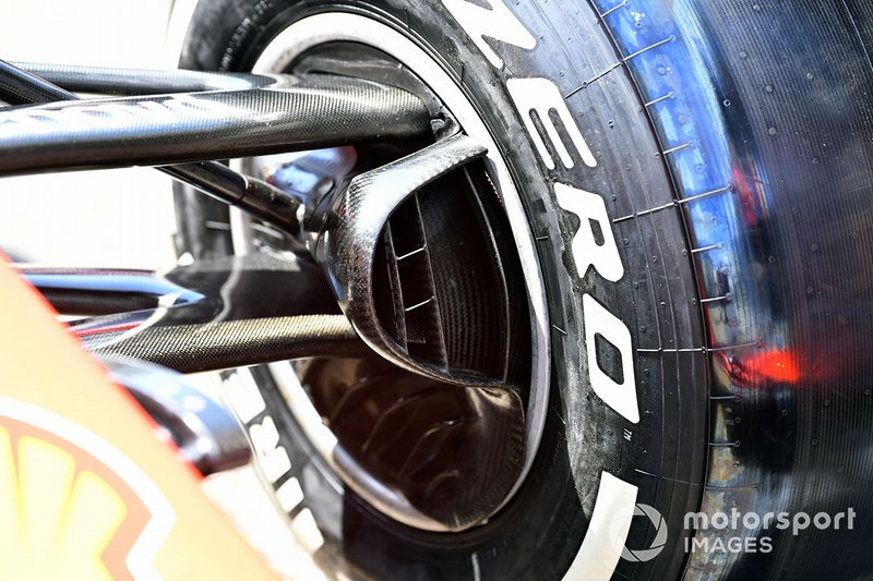 Ferrari, sadece frenleri kontrol etmeyen, aynı zamanda jant aracılığıyla hava akımını kontrol ederek aerodinamiye de katkı sağlayan fren hava girişini genişletti.