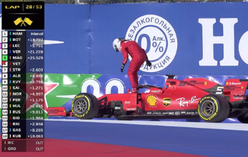 Vettel’in arızası MGU-K’nın izolasyonu ile ilgili olduğu için elektriksel bir arızaydı. Ciddi yaralanma riski taşıyordu. Aracın tamamı elektrik akımına maruz kalmıştı. Bu nedenle Vettel’in arabadan iniş şekli bile önemliydi. Merdivenden iner gibi, bir ayağı arabada, bir ayağı yerde olacak şekilde inseydi topraklama devresini tamamlamış olacaktı ve yaralanması söz konusuydu. O nedenle Vettel, arabadan normal inmek yerine iki ayağını aynı anda arabadan çekecek şekilde atladı.