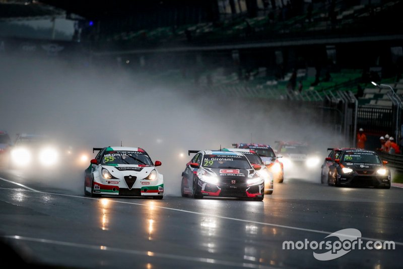 Islak zeminde koşulan yarışta Guerrieri ilk virajda liderliğe yükselmeyi başardı, Michelisz ise 4. sıraya geriledi.