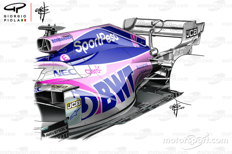 Racing Point, daha az soğutma gereksinimine sahip daha verimli olan AMG M11 güç ünitesinden faydalanabilmek için bu büyük değişikliği yapmıştı. Bu kapsamda Racing Point, sidepod bölgesinde W10'un temel tasarımına sahip olmaktan uzaklaşarak yeni bir tasarıma geçiş yapmıştı.