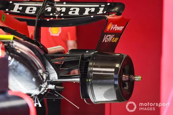 Bu, SF-24'ün diğerlerinden kesinlikle daha rekabetçi olmasına rağmen sadece Red Bull ile karşılaştırıldığında aerodinamik yükten yoksun olduğunun bir işareti mi? Cevap kesinlikle evet, ancak Pirelli'nin anahtarını dikkate alırsak, arka süspansiyona da bir göz atmalıyız. Burada da Ferrari geçen yıldan bu yana çok şey değiştirdi, ancak kuzeni Haas hariç herkes tarafından terk edilen çekme çubuklu süspansiyon araçta kaldı.