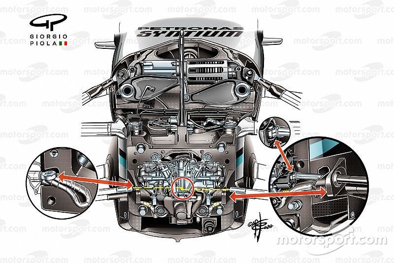 Anlaşılan o ki, bu sistem Mercedes'in 2019 aracı W10'da da yer alıyordu. DAS, yapbozun bir başka parçası gibi görünüyor. Takım DAS ile daha agresif açılar kullanabiliyor ve sistemi düzlükte sıfırlayabiliyor.