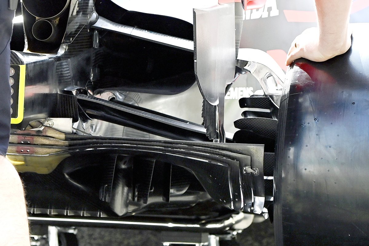 Buna rağmen takım, Bahreyn GP'ye gelirken elindekiyle yetinmedi ve tabanın arka tekerleğin önüne gelen bölümüne kırmızı ok ile gösterilen küçük kanatçığı ekledi.