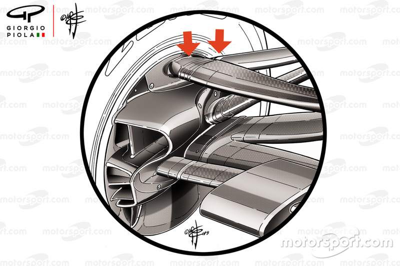 Bu kolların ayrılması, tasarımcıların parçaların yerleşimi konusunda daha spesifik çalışma yapmasını sağlıyor. Bu sayede süspansiyon kolları aerodinamik gereksinimlere göre daha verimli bir şekilde yerleştirilebiliyor.