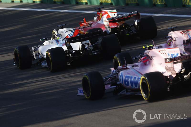 Sebastian Vettel, Ferrari SF70H, Felipe Massa, Williams FW40, Sergio Perez, Sahara Force India F1 VJM10 ve Esteban Ocon, Sahara Force India F1 VJM10