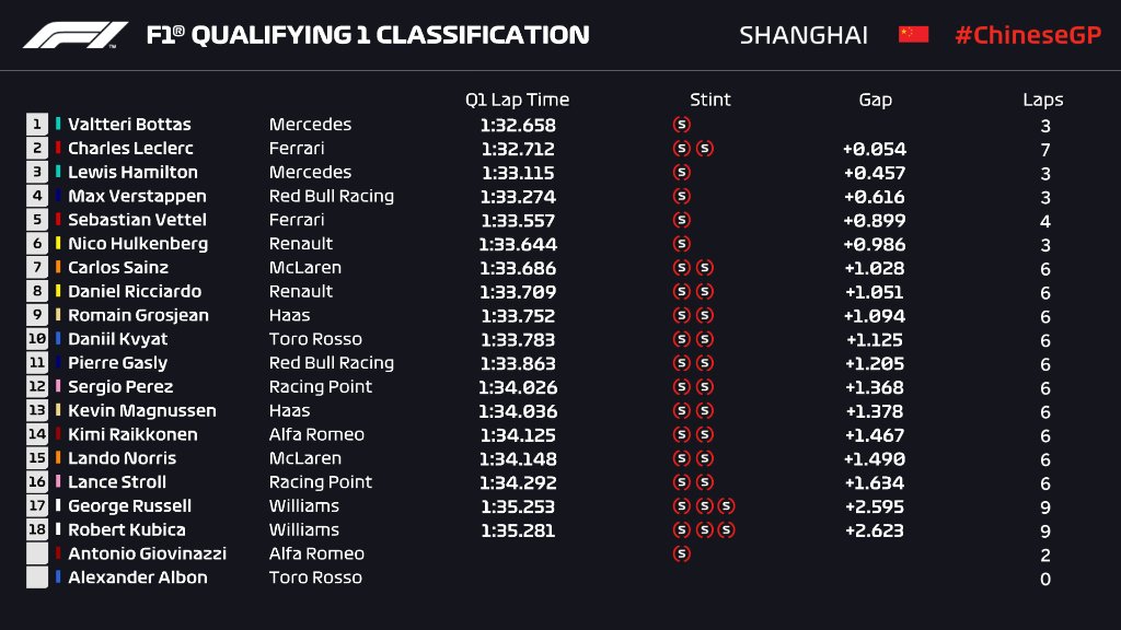 Sıralama turlarında elenen diğer üç isim Lance Stroll, George Russell ve Robert Kubica oldu. Russell böylelikle üçüncü yarışta da Kubica'yı geçti.