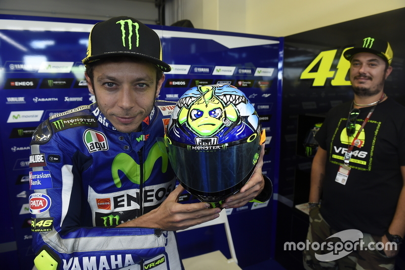 Bunun en güzel örneği belki de Rossi’nin 2015 yılında Misano’da taktığı kask oldu. Misano’ya, köyüne mesafe olarak en yakın olan yarış olması nedeniyle, ayrı bir önem veren Rossi, burada yapılan yarışlara hep özel tasarım bir kaskla geldi. 2015’te ise şampiyona lideri olarak geldiği evinde Rossi, küçük bir balığı takip eden büyük bir köpekbalığının bulunduğu bir karikatür çizimli kask ile Misano’daki yarışa çıktı.