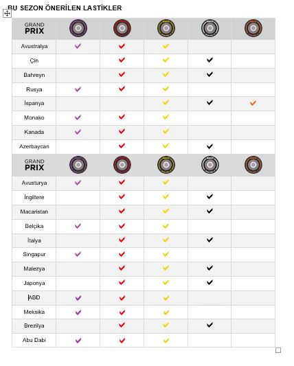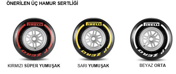 Buna karşın Pirelli ilk defa en sert lastiğini getirmek yerine P Zero Beyaz orta, P Zero Sarı yumuşak ve P Zero Kırmızı süper yumuşak hamurları öneriyor.