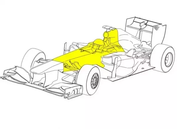 Ancak FIA, F1 arabalarındaki karoseriyi çok güzel tanımlamış. Tanım çok uzun olduğu için kısaltarak yazacağım. Şasi ve arabanın rüzgarla temas eden her yeri.