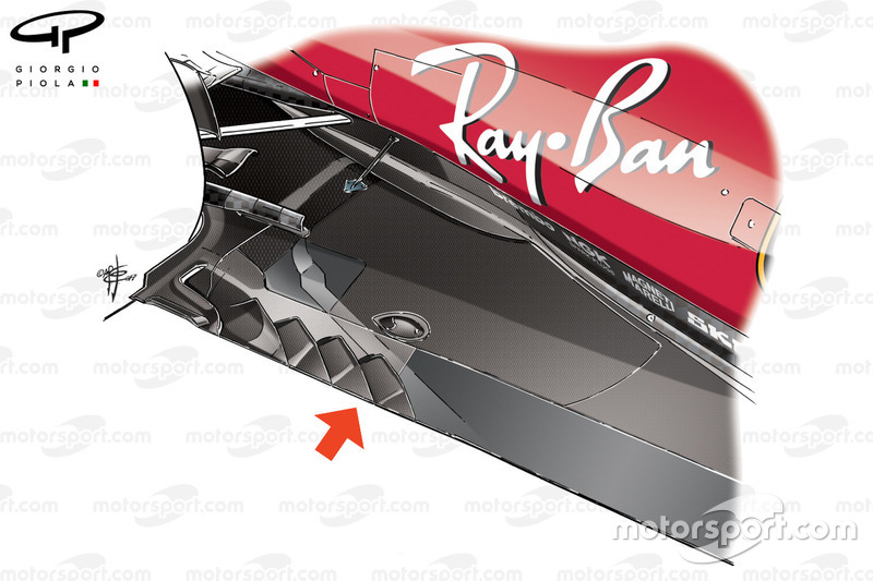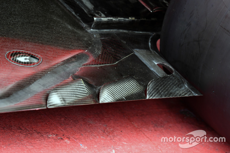 Ferrari'nin Austin'de piste sürdüğü yeni arka difüzörün orta bölümü daha düz ve yanlarda kaza koruyucuları var.