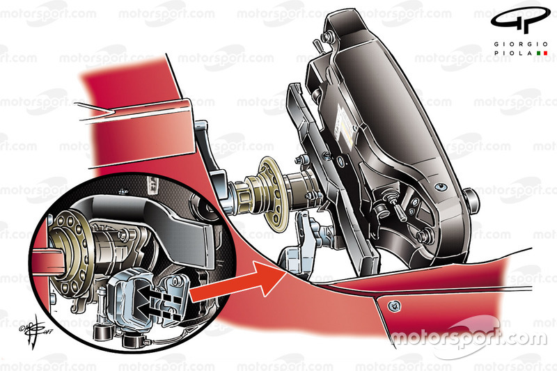 Ferrari'nin Singapur'da denediği yeni ön fren soğutma sistemi.