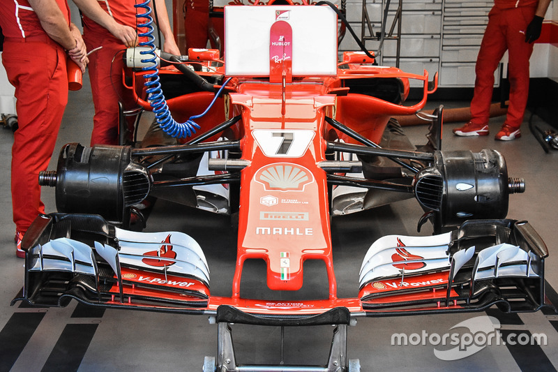 Gridde problem çözülmeye çalışılırken, Kimi Raikkonen'in SF70H'sine detaylı bir bakış.