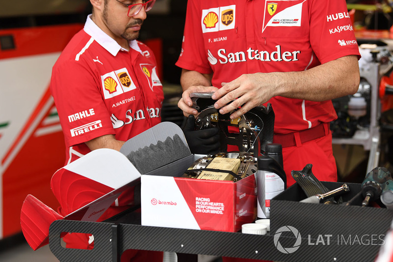 Ferrari mekanikerleri, brembo kaliperleri üzerine soğutucu yapıları takıyor.