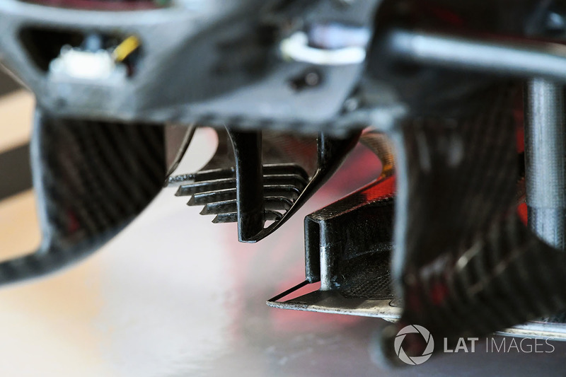Tabanın araçtan ayrılması sayesinde, difüzöre yapısal destek sağlayan parçacığı görebiliyoruz.