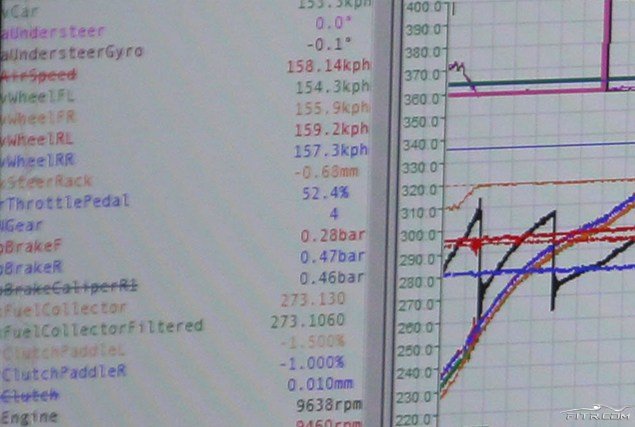 Üstteki resimde Williams mühendisinin çoklu kutucuklarla beraber grafiklerin bulunduğu ekrana baktığını görüyoruz. Altta kutucuk halinde bulunan yerde takımın araç üzerine binen yük, yakıt tüketimi gibi ekranları ayırdığını görüyoruz. Üst taraftaki grafikler ise direksiyonun verdiği tepki gaz tepkisi gibi bazı veriler bulunmakta.