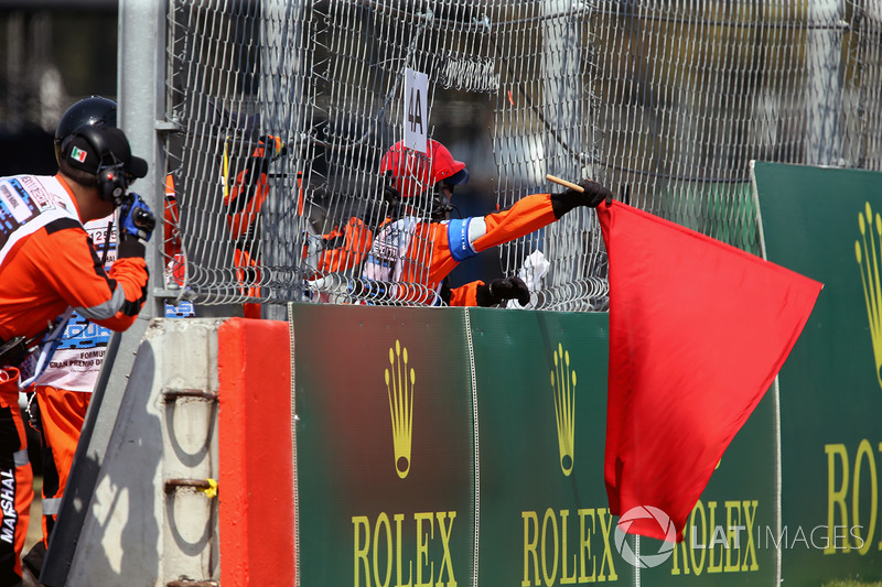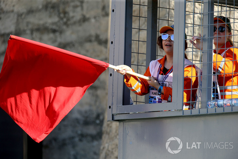 Pist görevlisi ve kırmızı bayrak