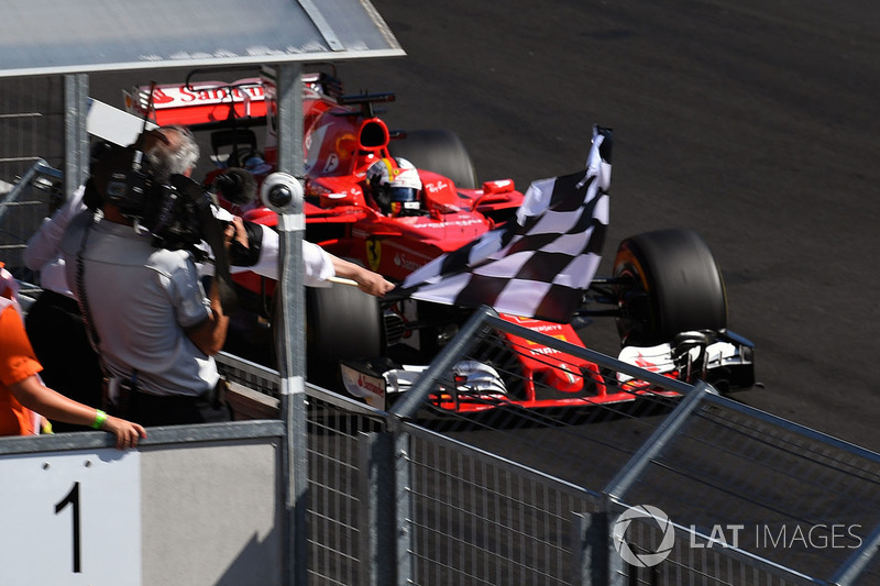 Damalı bayrak: Yarış galibi Sebastian Vettel, Ferrari SF70-H