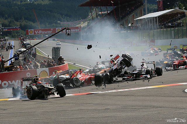 2012’de yaşanan bu kaza olmasaydı belki de Fernando Alonso şampiyon olabilirdi. Yarış başladıktan sonra Romain Grosjean ve Lewis Hamilton birbirine temas ediyor, bu temasla beraber Romain Grosjean, Fernando Alosno’nun üstünden geçiyor. Birkaç pilotu da beraberinde götüren bu üçlünün kazası hafızalarımızda yer kazanıyor.;;;