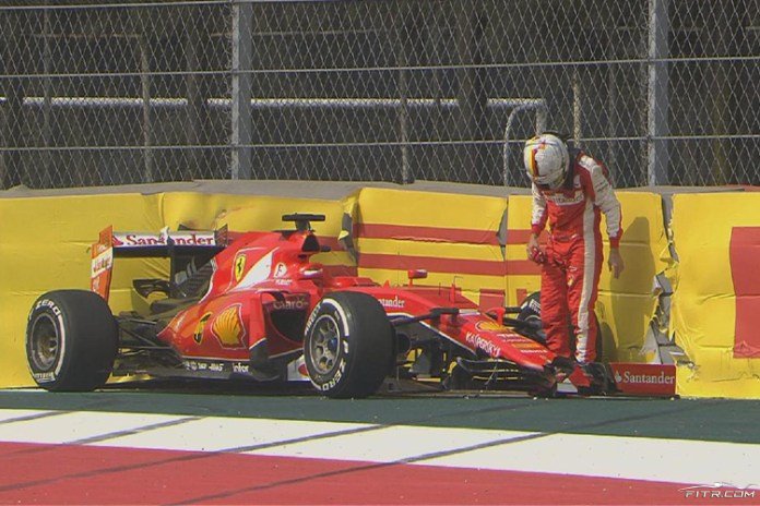 20. turda Raikkonen ve Williams’tan Valtteri Bottas altıncılık için savaşmaya başlamışlardı. 24. turda ikinci virajda Bottas dışarıdan atak yaptı ve bir sonraki virajın içinde kalacak şekilde kendisini konumlandırdı, ancak Raikkonen geri çekilmeyince Williams’ın sol ön tekerleğine çarptı ve kendi arka sağ süspansiyonu kırılınca yarışı bırakmak zorunda kaldı. Bottas’ın aracı hasar almadı ve devam edebildi.
