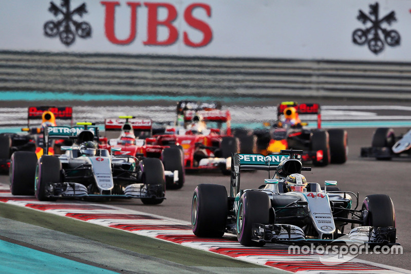 Start: Nico Rosberg, Mercedes AMG F1 ve lider Lewis Hamilton, Mercedes AMG F1