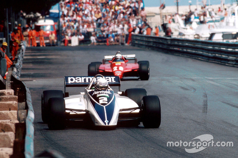 Ricardo Patrese, Brabham BT49D leads Didier Pironi, Ferrari