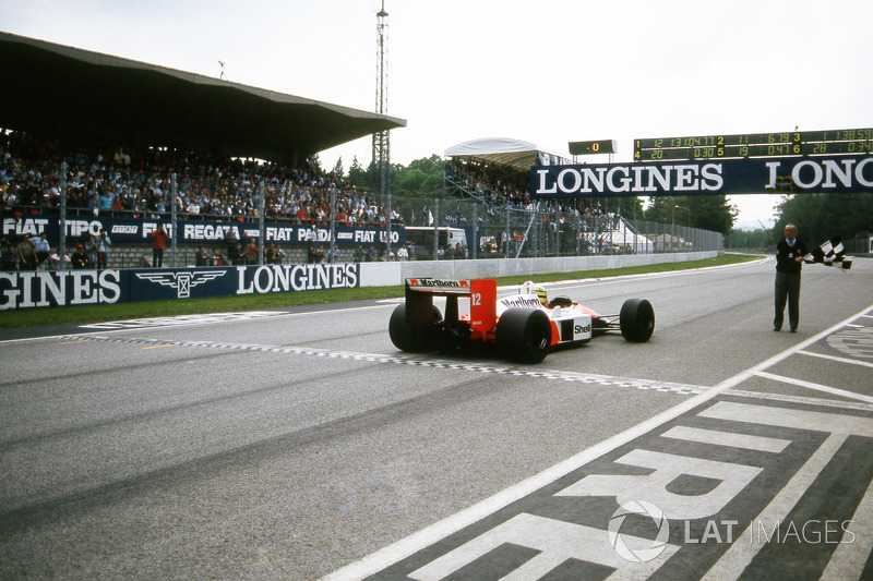 Senna, ölümünden altı yıl önce San Marino'da gerçekleştirilen yarışı baştan sona üstün götürerek kazanmayı başardı.