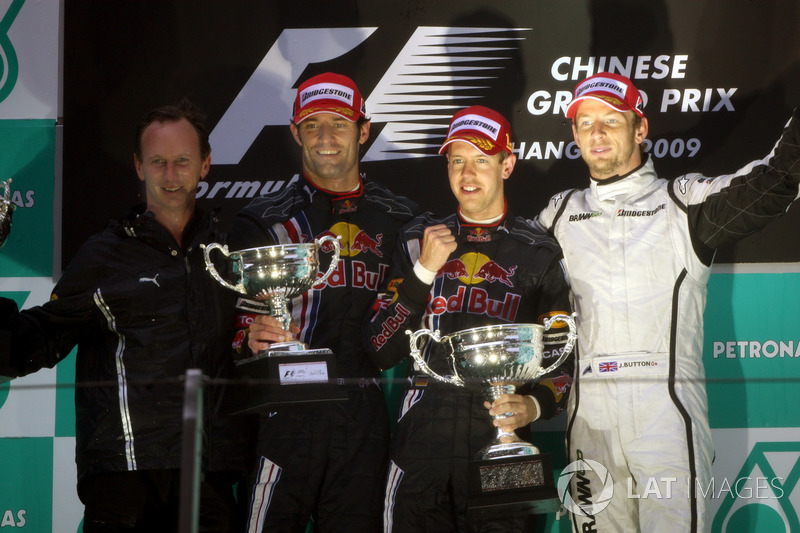 Sebastian Vettel, Çin Grand Prix'sinde Red Bull Racing'in Formula 1'deki ilk galibiyetini elde etti.