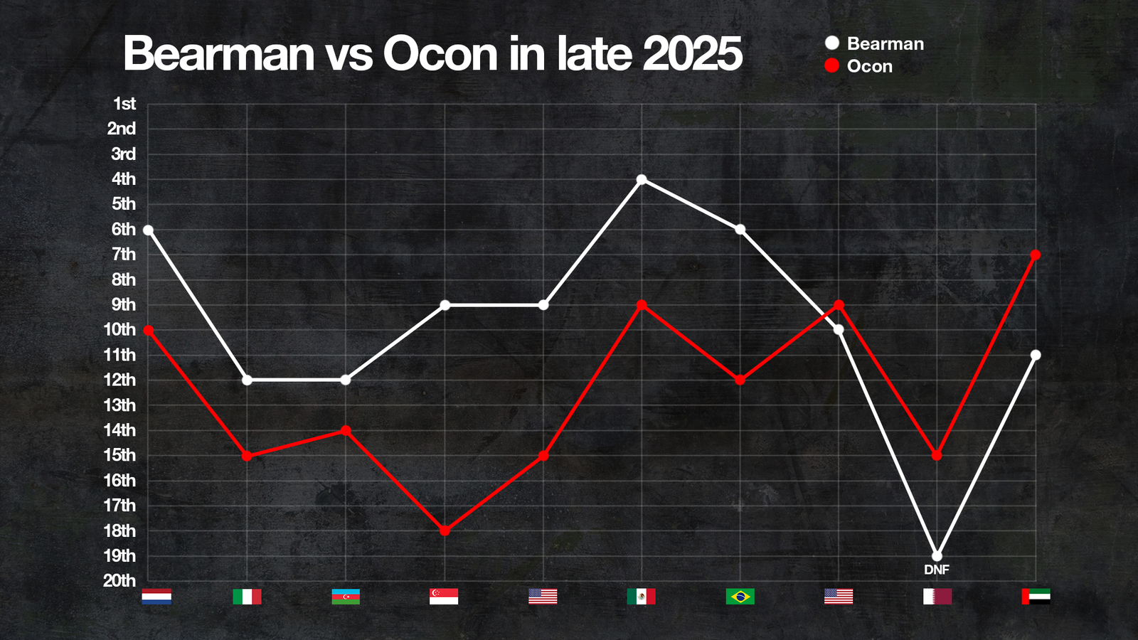Lewis Hamilton’ın yanı sıra, 2025’te beklentileri karşılayamayan birkaç isim daha 2026’da F1 kariyerini kurtarmak zorunda. Haas’ta Esteban Ocon, çaylak takım arkadaşı Ollie Bearman’ın gerisinde kaldı. Ocon, Abu Dhabi’de güçlü bir hafta sonu geçirse de, 2026’da performansını istikrarlı şekilde artırmak zorunda. Alpine’de Franco Colapinto ise sezonun son bölümündeki puansız ve zayıf performansıyla koltuğunu riske attı. Red Bull’un ikinci takımında yarışan Liam Lawson da, 2026’da Arvid Lindblad’a geçilirse, gridde uzun vadeli bir geleceğe sahip olamayabilir. Tüm bu isimler için 2026 sezonu, kariyerlerinde belirleyici olacak.