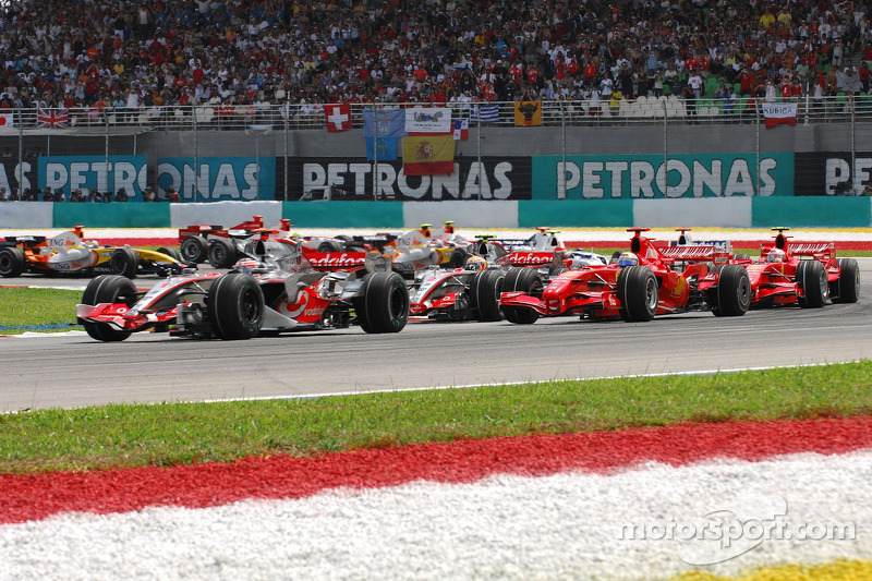 2007 Malezya GP'de sıralama turlarının en hızlısı Felipe Massa olsa da, Fernando Alonso startla birlikte liderliği, Lewis Hamilton ise ikinciliği aldı.