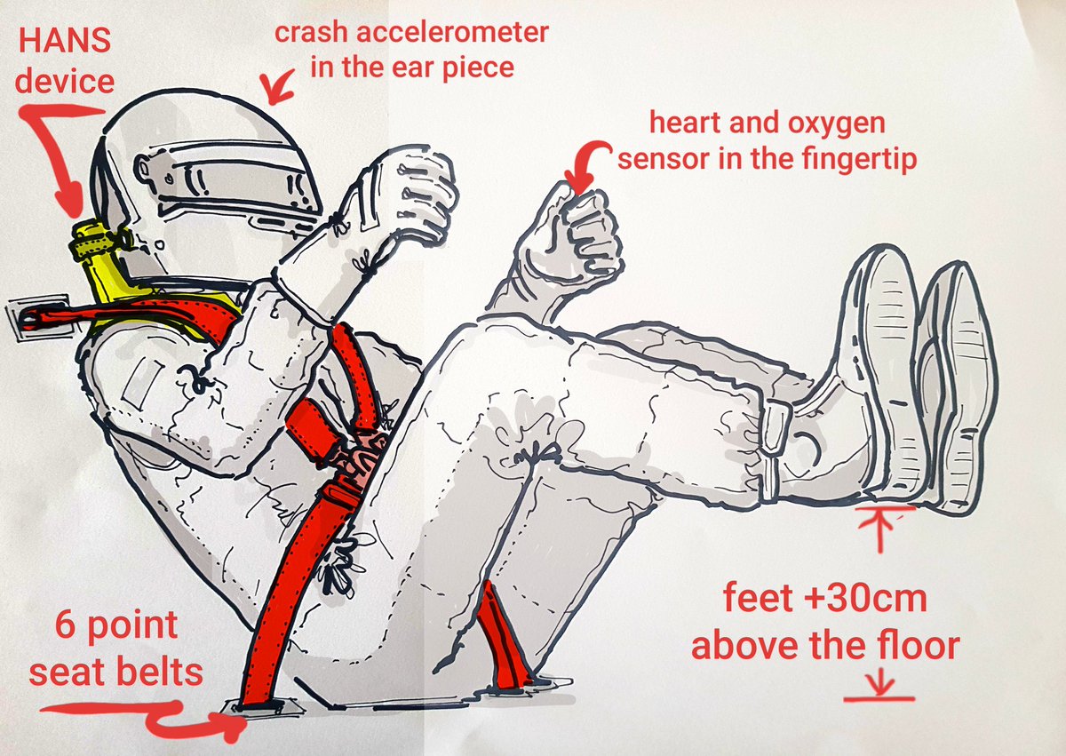 Pilotun kokpit içindeki oturuş pozisyonu ise böyle. Eldivenlerde nabız ve oksijen sensörü bulunmakta. Pilotu ayakları zeminden 30 cm'den fazla yukarıda durmakta ve pilot 6 noktalı emniyet kemeri ile bağlanmaktadır.