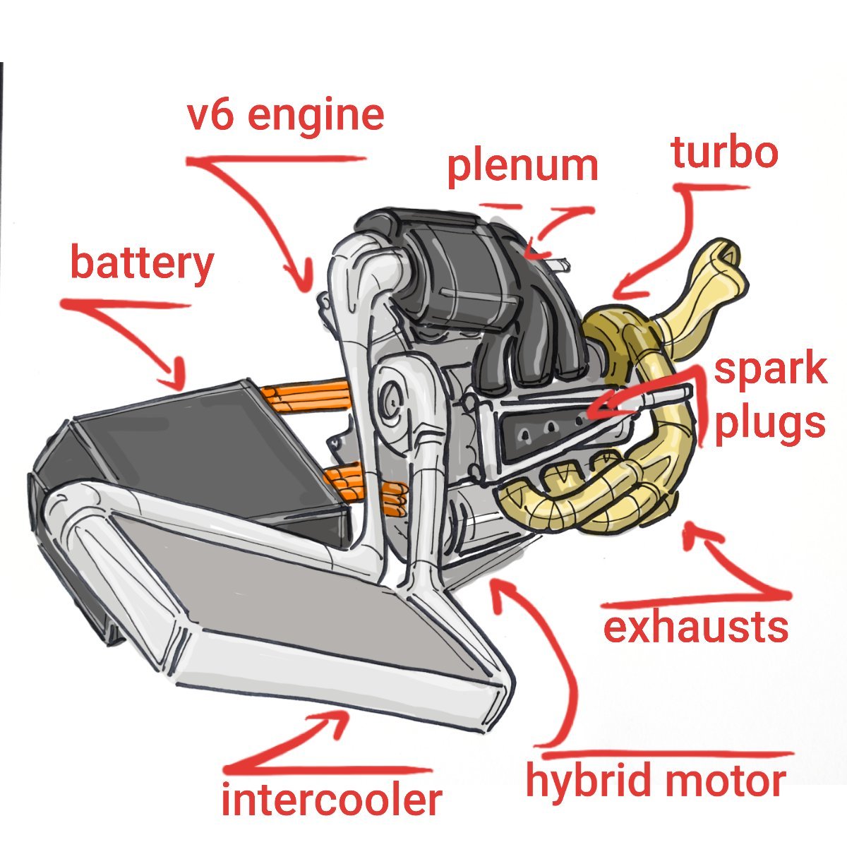 1000 beygirden fazla güç üreten bu canavarların temel şeması bu şekilde.