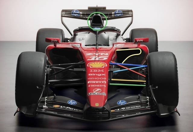 Ferrari ile Mercedes’in kendi shakedown sürüşlerinde kullandıkları gerçek araçlar karşılaştırıldığında, Ferrari’nin basit bir rollover bar hava girişi tasarımını tercih ettiği görülüyor. Mercedes ise, motor hava girişi ve soğutma işlevini bir arada sunan çok amaçlı bir hava girişi kullanıyor. Bu sayede Mercedes, radyatör yan kutusu hava girişlerini küçültebiliyor. Ferrari’nin ise bu alanda daha geleneksel bir yaklaşımı sürdürdüğü dikkat çekiyor.