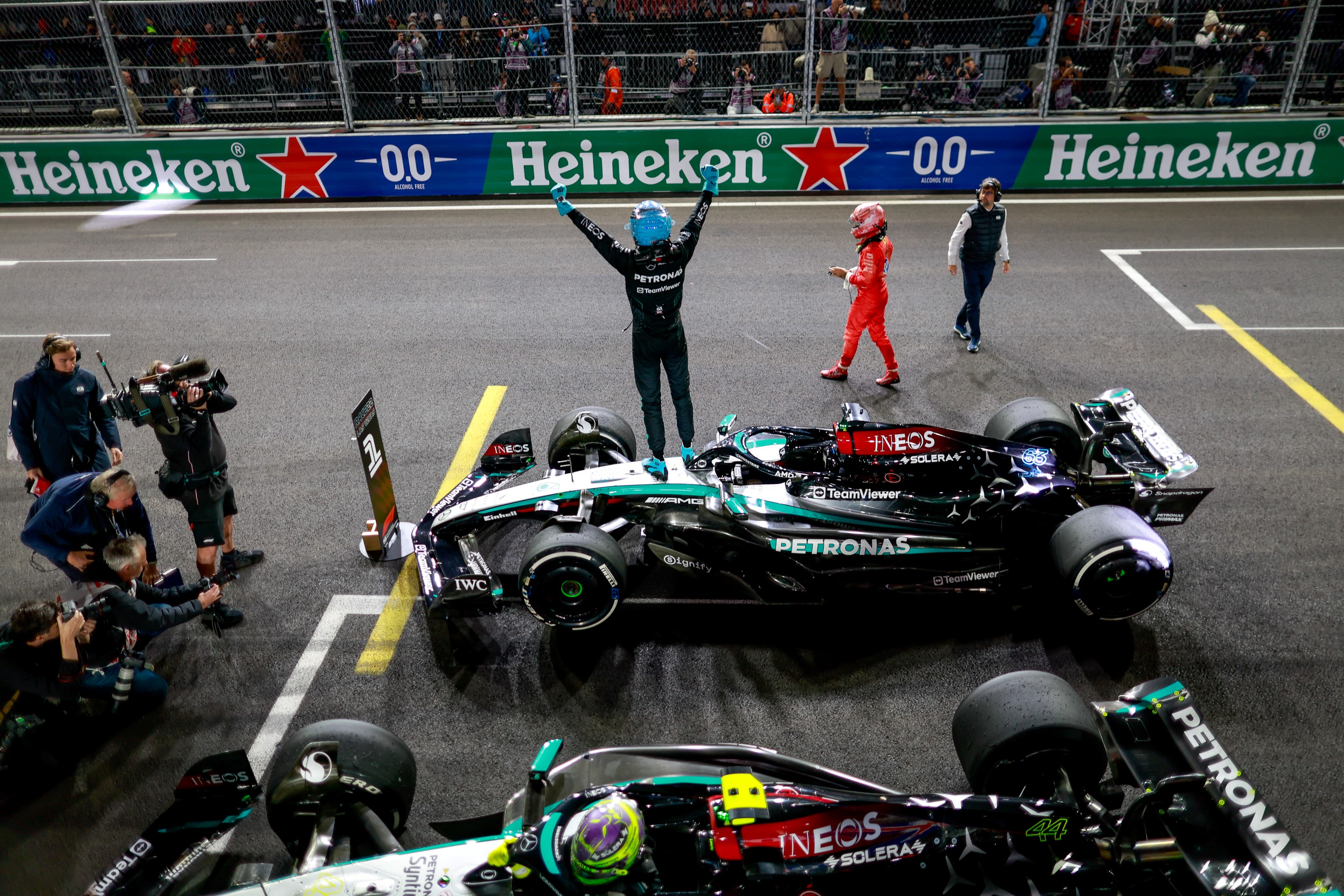 2024'te George Russell, Lewis Hamilton'ın liderliğinde Mercedes 1-2'lik performans sergiledi.