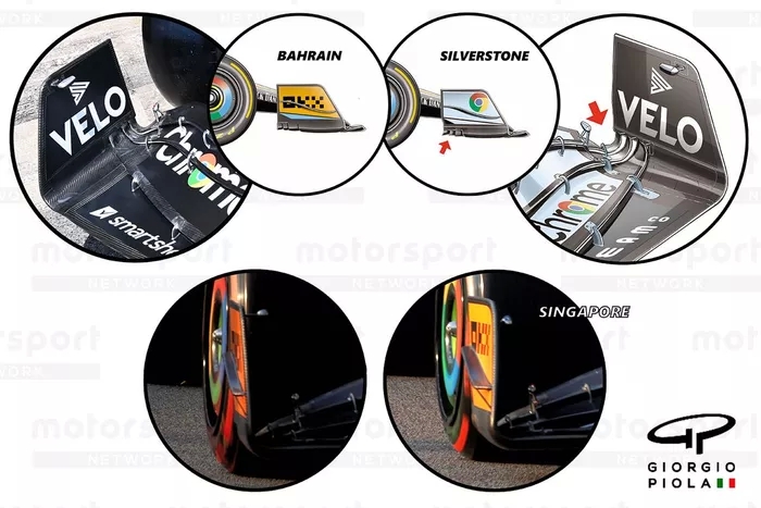 Singapur GP'sindeki zemin performansını daha da geliştirmek için McLaren, 2022'nin başında denediği ve daha sonra vazgeçtiği kenar kanadı yeniden tanıttı.