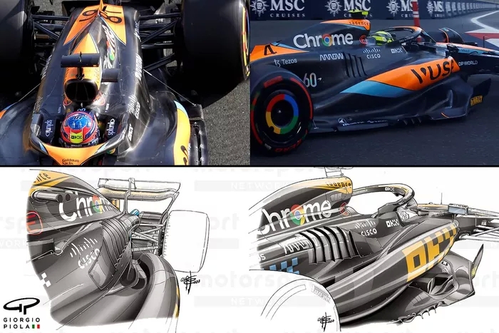 McLaren 2022'de sidepod tasarımında Red Bull tarzı aşağı eğim çözümüne zaten geçmiş olsa da, bu yıl işleri büyük ölçüde daha ileriye taşıdı.