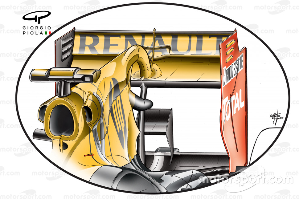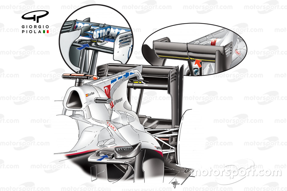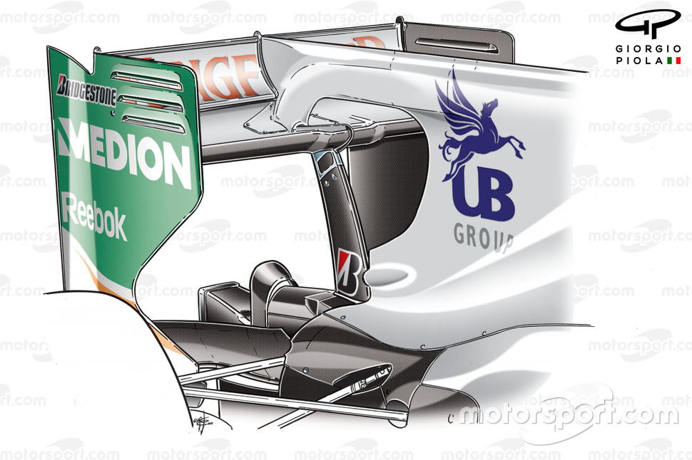 Takım Japonya'da arka tarafta kapsamlı bir değişiklik yaptı. Kanal çıkışı normalde arka kanadın üst planyasında yer alırken Japonya'da alt yani ana planyaya alındı.