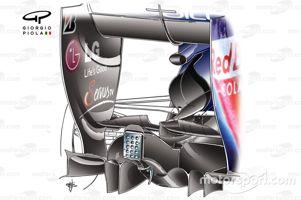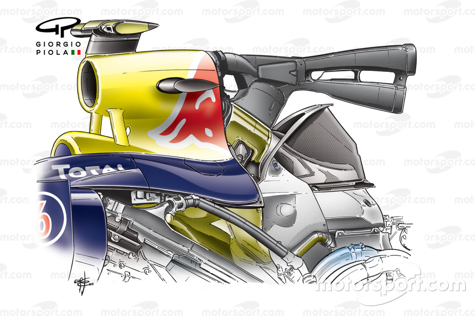 Red Bull'un tasarımında, F-kanal sisteminin çıkışı, motor kapağı hava çıkışının hemen üstünde yer alıyordu.