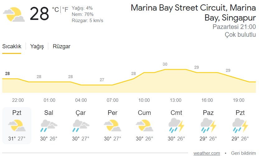 Weather kaynaklı hava raporlarına göre Cumartesi günü %60 Pazar günü ise %70 yağı ihtimali var.