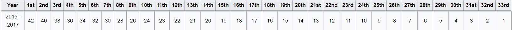 Sıralama turu derecesine göre dağıtılan tüm puanlar