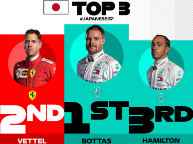 2019 Dünya Şampiyonası'nın 17. yarışı olan Japonya GP'de Mercedes pilotu Valtteri Bottas kazanırken, Sebastian Vettel 2. oldu. Mercedes ise 2019 Formula 1 Takımlar Şampiyonluğunu ilan etti.