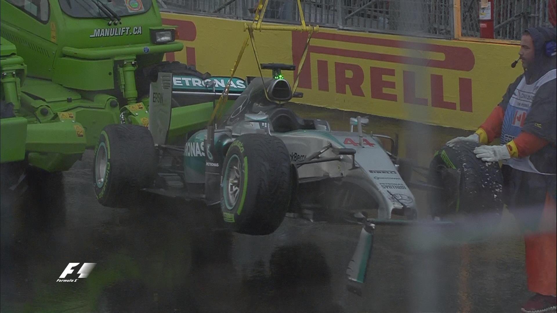 Yağmurun yağmasıyla birlikte sadece Mercedes pilotları piste çıkarken, Lewis Hamilton arka düzlüğe dönen virajda su birikintileri yüzünden kızaklanma yaşadı ve aracını bariyerlere çarpmak zorunda kaldı. Hamilton'ın kazasından sonra seans kırmızı bayrakla durduruldu.
