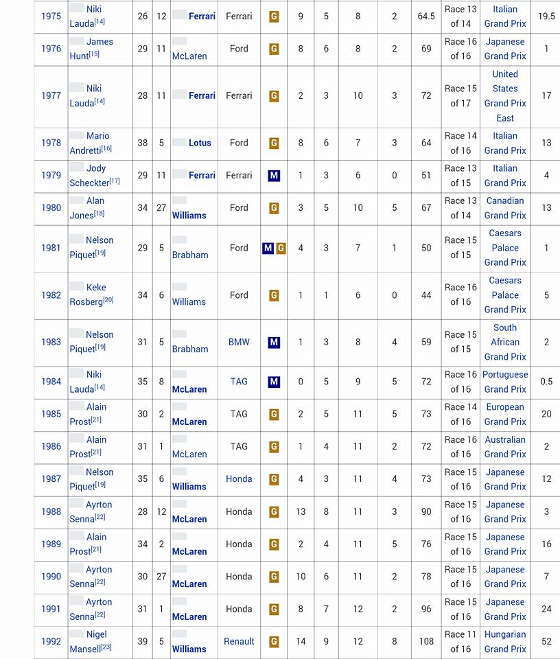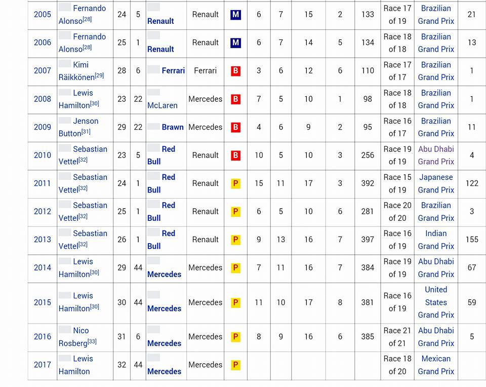 Üçüncü sıra boş kalıyor, çunkü 3 yıl üst üste şampiyon olabilen pilot hiç olmamış.