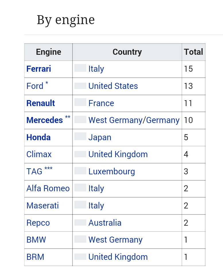 (Bu istatistikleri önemli datalar olduğu için kaydetmenizi öneririm. Her Formula 1 izleyicisinin bilmesi gereken istatistikler olduğunu düşünüyorum. Bunlar direk şampiyonluk sayılarına göre yapılmış başarı istatistikleridir. Özellikle son zamanlarda yapılan ve içinde komik yada gereksiz referanslar barındıran istatistiklerden değildir.)